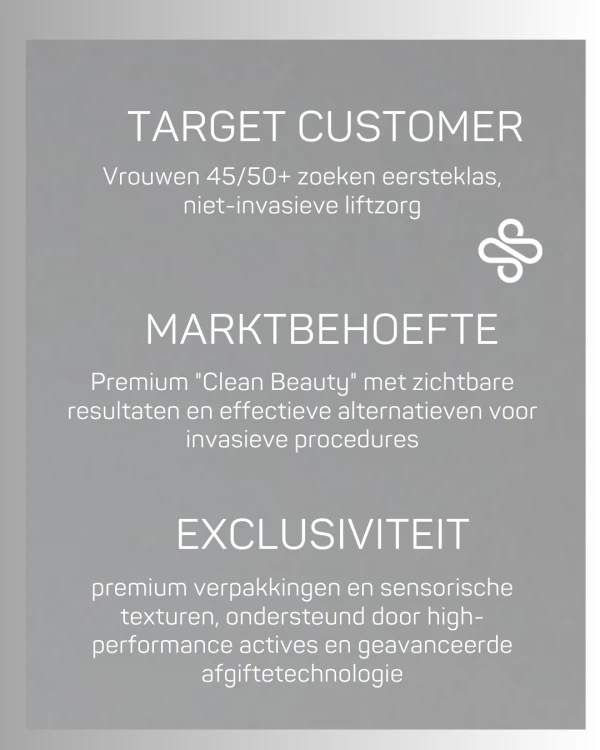 De UPLIFT lijn focust op huidversteviging, contourverbetering en volumeherstel. Door een combinatie van shape memory-technologie, collageenondersteuning en diepe hydratatie wordt de huidstructuur verfijnd en de gezichtscontour zichtbaar aangescherpt.